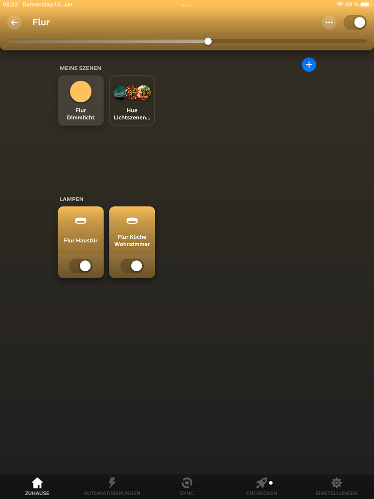 Die Hue sind eingebunden, aber die Helligkeit getriggert durch den Bosch Bewegungsmelder scheint sich der Umgebung anzupassen. Ist in anderen Räumen das Licht an, werden die beiden Lampen (um dies es mir gerade geht) entsprechend gedimmt wie ich das möchte. Aber wenn es stockdunkel ist, werden sie hell angesteuert
