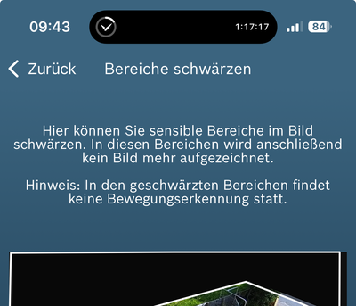 Wenn Du innerhalb dieses Radius Bereiche ausgrenzen willst, kannst Du dies durch Schwärzungen und Bewegungszonen erreichen.