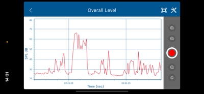 Viel mehr als 40 dBA (bzw. im Peak 50 dBA) kamen an der Kamera nicht an (ca. 20 cm von der Kamera gemessen):