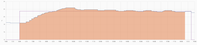 Von 19:45 bis nach Mitternacht stand Ventilöffnung bei 17%, in solchen Situationen bleibt Heizkörper kalt, es gibt keinen Durchfluss. Ja, in dem Fall wäre auch kein Durchfluss notwendig gewesen (ist > soll), allerdings als kurz nach 23:00 hochgeregelt wurde, hat das HT II noch fast 90 Minuten benötigt, um wieder das Ventil weiter zu öffnen.