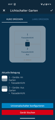 Mir gefallen die neuen umfangreichen Konfigurationsmöglichkeiten des Universalschalters sehr gut. Dennoch habe ich insbesondere mit Blick auf den Einsatz als Lichtschalter einen Verbesserungswunsch: