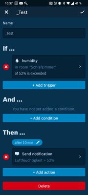 Ich habe mir eine simple Automation erstellt um bei hoher Luftfeuchtigkeit benachrichtigt zu werden.