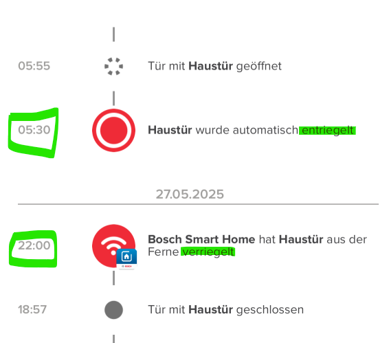 Ich sehe im Yale Protokoll: Haustür wurde automatisch entriegelt.
