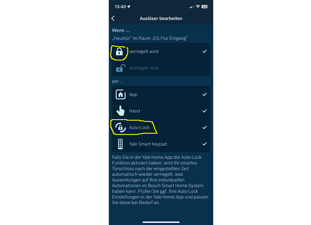 Ich nutze die Bosch Smart Home App, aber die Funktion (Zustand) kommt doch aus dem Yale Smart Lock 2 und nicht aus der Yale App.