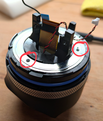 Hier nun ein paar Worte zum zerlegen des unteren, drehbaren Teils der Kamera mit Objektiv und Linse.
