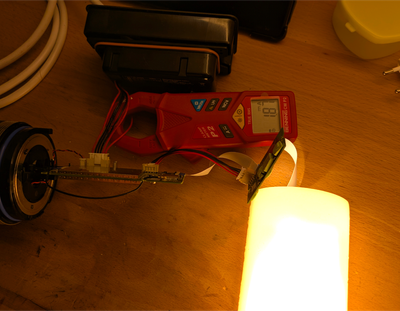 Beim Einschalten passierte aber leider ... Nichts 🙁 Scheinbar hat es den LED-Treiber gegrillt, denn am Strang liegen nun nur noch 6,5 V im eingeschalteten Zustand an. Naja, schade. Aber dem Risiko war ich mir bewusst.