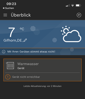 Nachdem aus Versehen (Party zum 18. Geburtstag) der Hauptschalter unsere Heizung ausgeschaltet und heute morgen wieder eingeschaltet wurde, kriege ich keine Verbindung mehr zur my Buderus App, auch nicht nach Neuinstallation der App. Und damit natürlich auch nicht zur Bosch Smarthome App und Apple HomeKit.