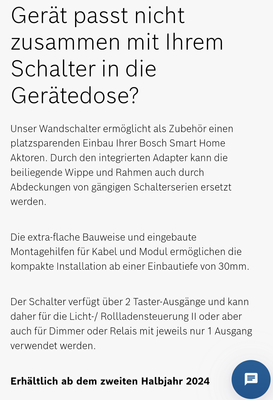 Ich denke ich warte auf den Wandschalter. Wenn der im 2. HJ raus kommt, lässt sich die Zeit bis dahin überbrücken. Danke für die Info. Falls jemand genauere Infos hat, wann der Wandschalter released wird, gerne her damit 🙂