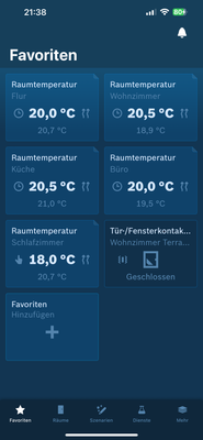 Unter Favoriten taucht die Fenster Erkennung auf allerdings ohne das man drauf klicken kann. Bei den anderen wie Thermostate und Raum thermostat kann ich direkt Einstellungen vornehmen.