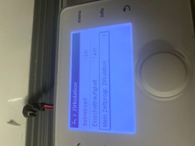Zirkulation solltest du auf "aus" stellen. Falls du aufgrund der Leitungslänge oder des "Komfortwunsches" doch Zirkulation benötigst, dann bitte nur im wirklich benötigten Zeitfenster aktivieren. Auf keine Fall nachts durchlaufen lassen. M.E. ist Zirkulation reine Energieverschwendung.